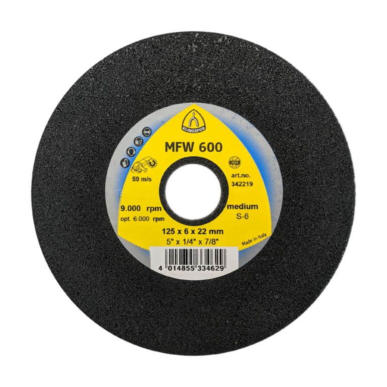 Klingpsor 342219 MFW 600 Hochleistungs-Vliesscheiben für Stahl, Edelstahl, NE-Metalle, Grau, Medium Feinheitsgrad, 125mm x 6mm x 22mm, 5 Stück