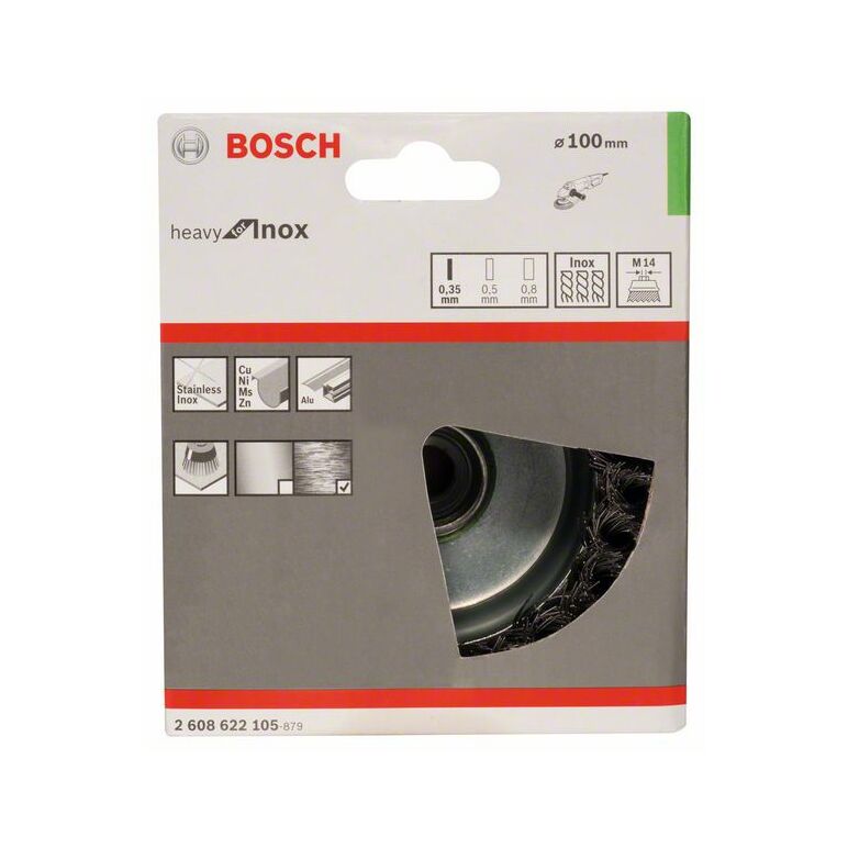 Bosch Topfbürste, Edelstahl, gezopfter Draht, 100 mm, 0,35 mm, 8500 U/ min, M14 (2 608 622 105)