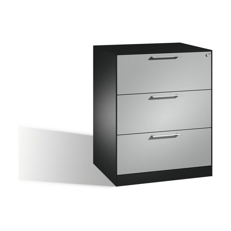 C+P Hängeregistraturschrank Asisto DIN A4, 3 Schubladen, zweibahnig Front Weißaluminium Korpus Schwarzgrau