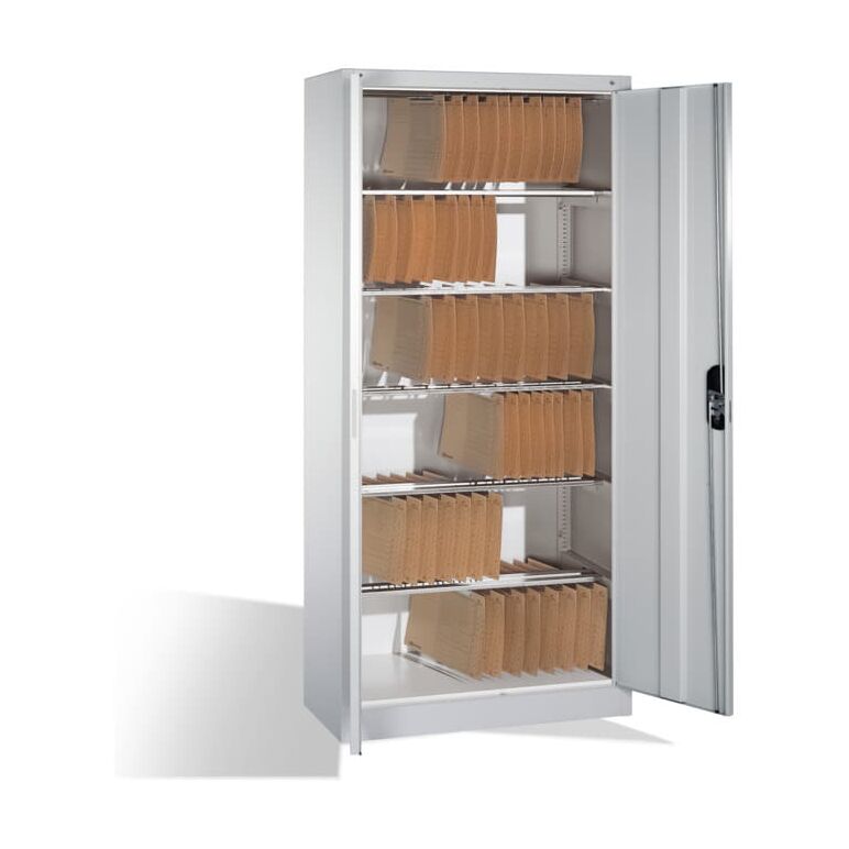 C+P Aktenschrank Acurado mit Drehtüren, innen 6 Pendelstangen, H1950xB930xT400mm Front Lichtgrau