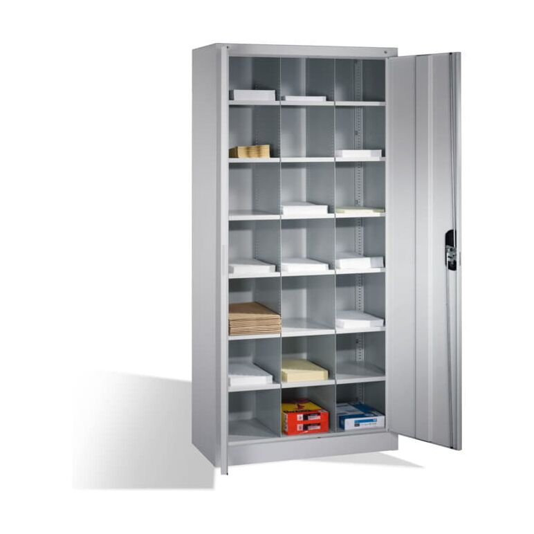 C+P Aktenschrank Acurado mit Drehtüren, innen 21 Gefache, H1950xB930xT400mm Weißaluminium