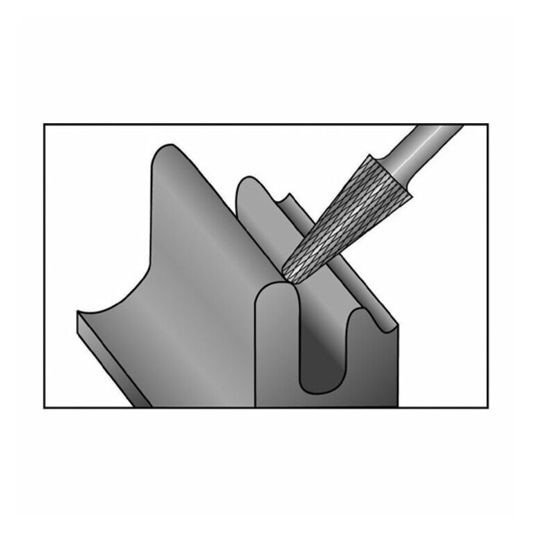 Frässtifte aus Hochleistungshartmetall mit Kreuzverzahnung. Die Kreuzverzahnung ergibt eine höhere Spanleistung gegenüber der Einfachverzahnung. Dies wirkt sich insbesondere bei schwerzerspanbaren Werkstoffen positiv aus. Einsatzgebiete: für hochlegierte, rostbeständige, säurebeständige und hitzebeständige Stähle, Guß und Kunststoffe. Zum Entgraten, Kantenbrechen, Verputzen, Schweißnahtbearbeitung und Flächenbearbeitung.