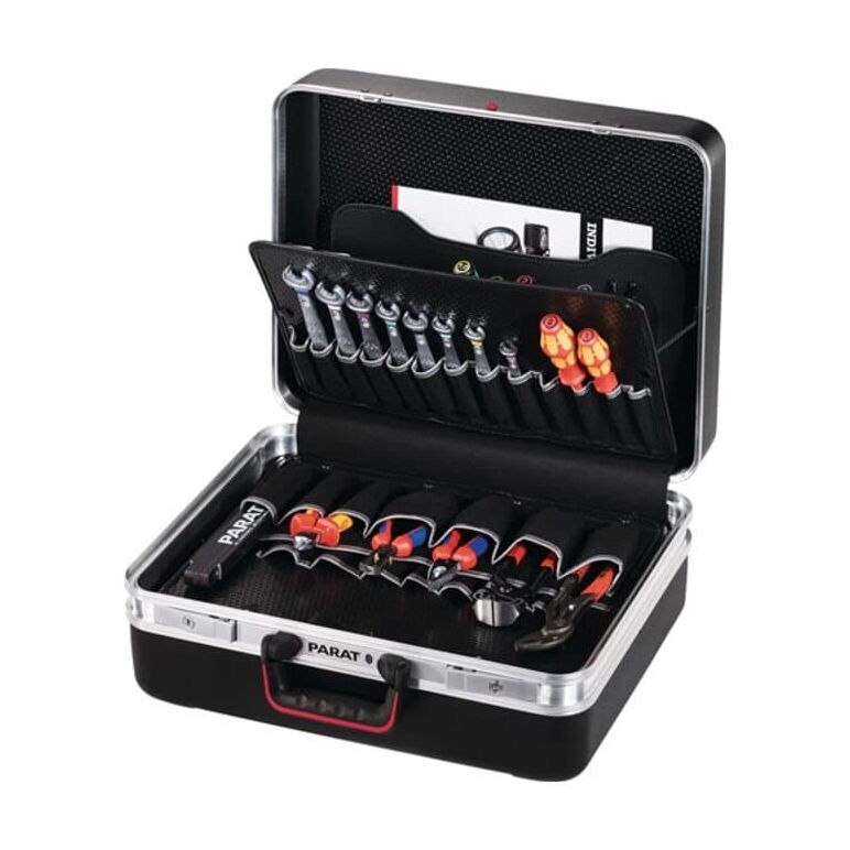 Mit dem Parat Schalenkoffer X-ABS Doppel-Alu.-Rahmen, schwarz bleiben die Werkzeuge immer an ihrem Platz, selbst bei Öffnung kopfüber.