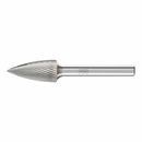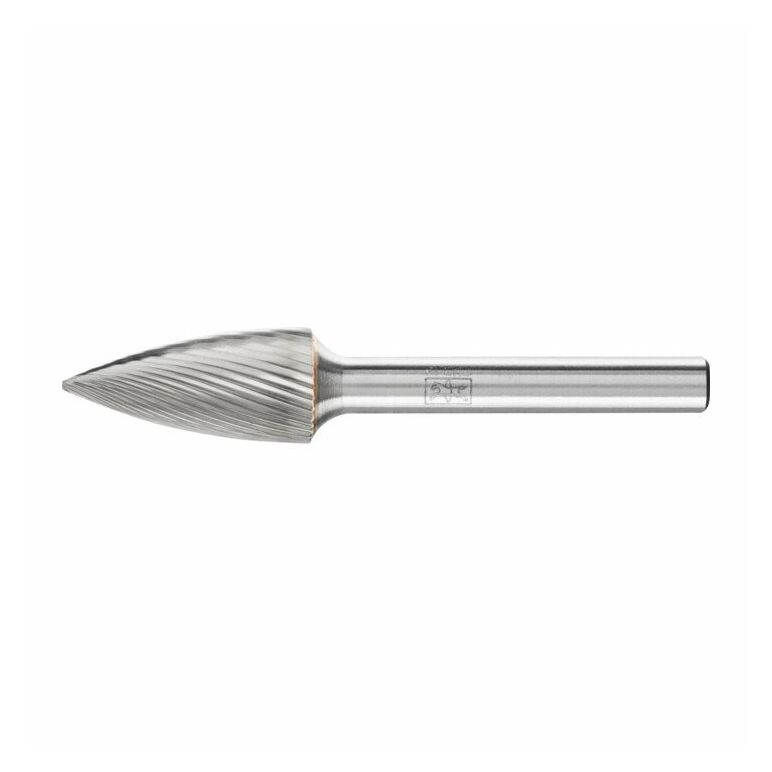 - Spitzbogenförmiger Frässtift nach DIN 8032 mit Verzahnung nach DIN 8033, Spitze abgeflacht