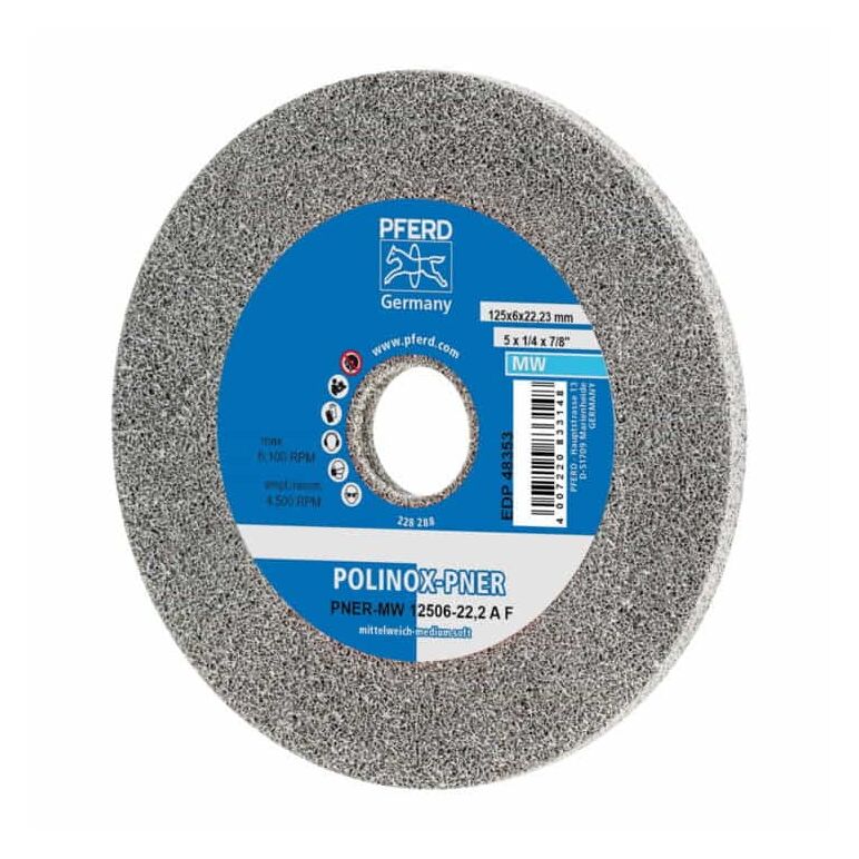 PFERD POLINOX verpresstes Vlies-Rad PNER Ø 125x6 mm Bohrung-Ø 22,23 mm Mittelweich A Fein für Finish