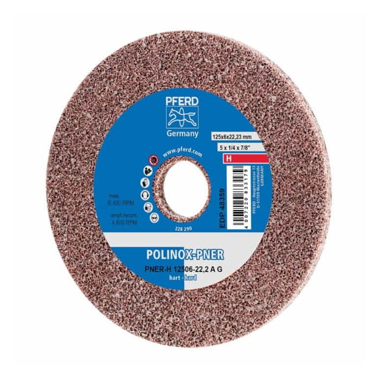 PFERD POLINOX verpresstes Vlies-Rad PNER Ø 125x6 mm Bohrung-Ø 22,23 mm Hart A Grob für Finish