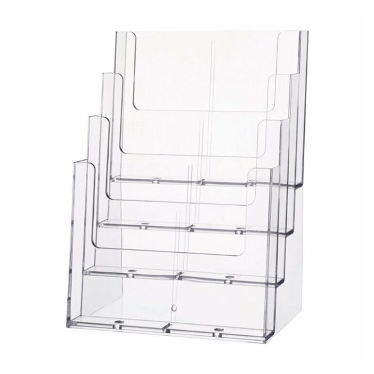 freistehend · Kunststoff glasklar · 4 Fächer für Prospekte im Format A4 hoch · zur Wandmontage geeignet Weitere technische Eigenschaften: · Ausführung: freistehend