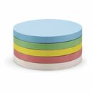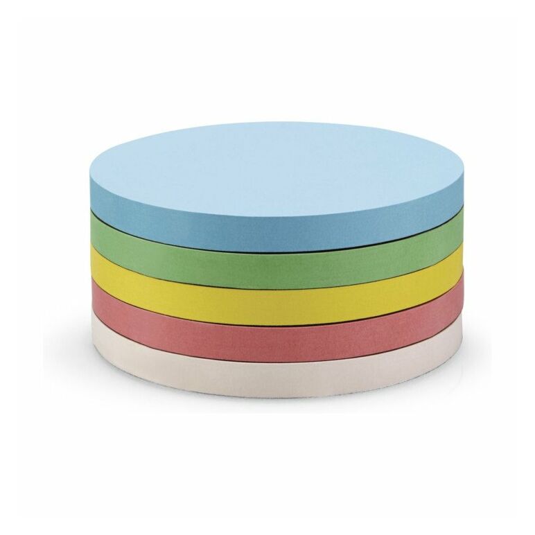 - 250 selbstklebende Kommunikationskarten, rund (D = 140 mm), in 5 Farben sortiert (rosa, grün, gelb, weiß blau).