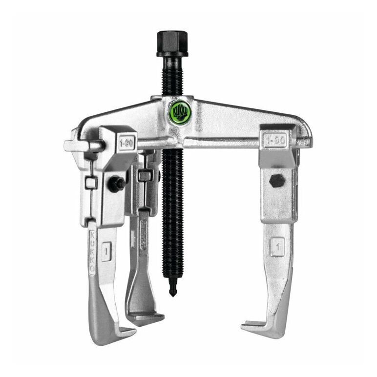 - Universell verwendbar zum Abziehen von Lagern, Scheiben, Zahnrädern usw. Bei 880100 Gr. 5 kann die Spanntiefe von 400 mm (normal) durch Verstellen der Arme bis 700 mm erweitert werden.