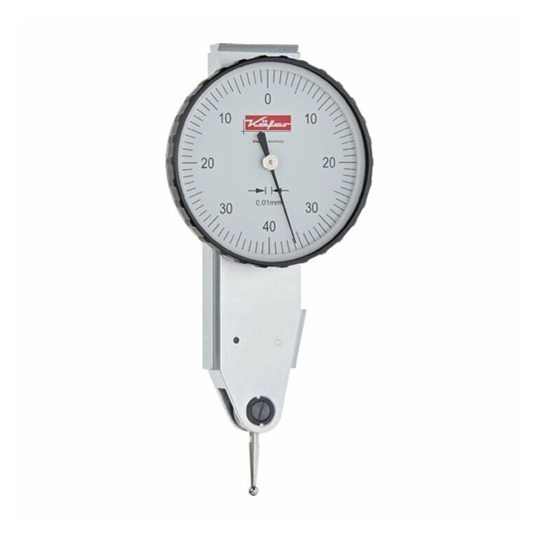 Genauigkeit nach DIN 2270 · automatische Umschaltung der Messrichtung · wesentliche Lagerstellen der Messwerke sind in präzisen Lochsteinen gelagert · Lagerung der Fühlhebelwelle in Präzisionskugellagern · Gehäuse hartverchromt · antimagnetische Anzeige (gewöhnliche Magnetfelder sind ohne Einfluss auf die Ablesung)· drei eingefräste Schwalbenschwanzführungen zur Aufnahme des Einspannschaftes · drehbare Strichskala Messeinsatz mit 2 mm HM-Kugel Messeinsatzgewinde M1,6 Weitere technische Eigenschaften: · Ausführung: Messeinsatz parallel zum Ziffernblatt schwenkbar · prüfpflichtig: ja