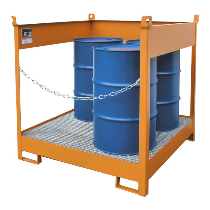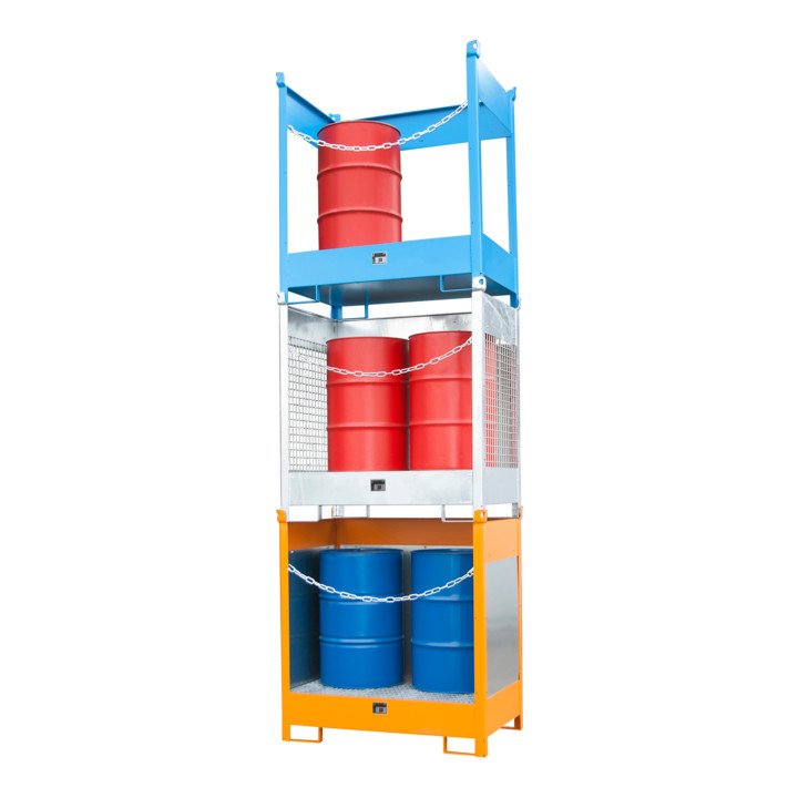 Lagern, Stapeln und Transportieren von Fässern mit Hubwagen oder Gabelstapler. Für Fässer à 200 Liter, auch mit 60-l-Fässern und Kleingebinden kombinierbar