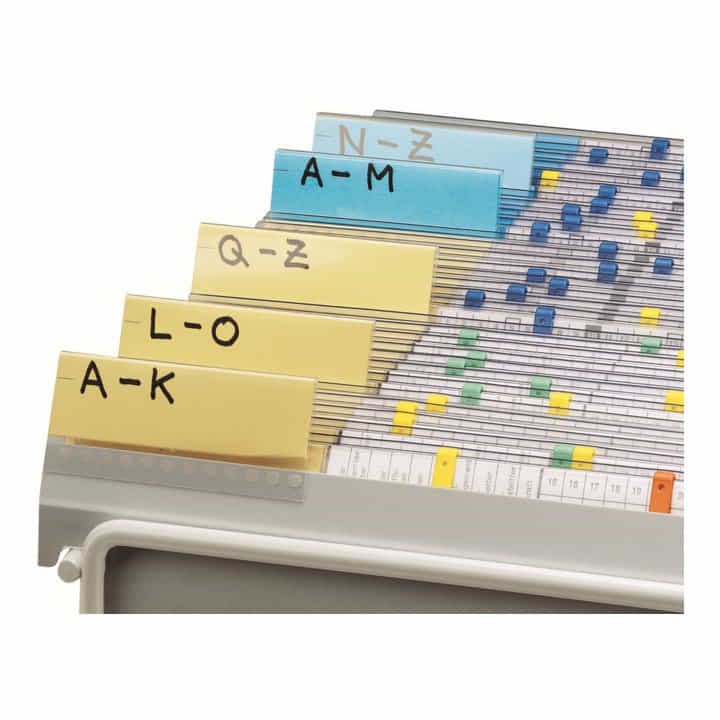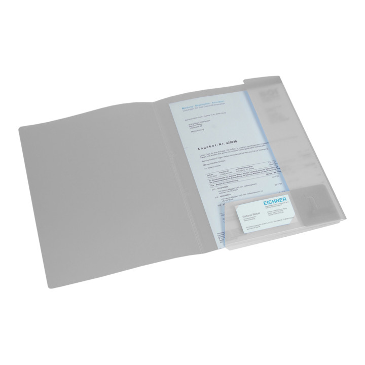 PVC-Hängemappe seitlich offen mit 2 Metallhängeschienen, inkl. Reiter und Einsteckschild.