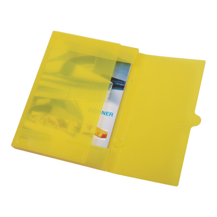 DIN A4 Eckspann- und Collegemappen aus stabilem Polypropylen in verschiedenen Farben.