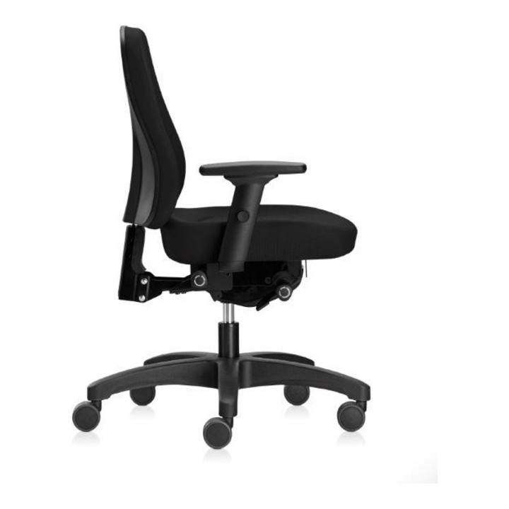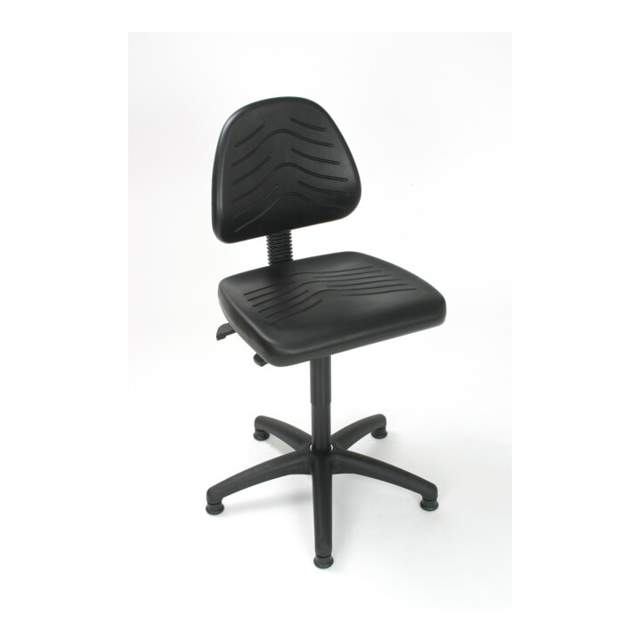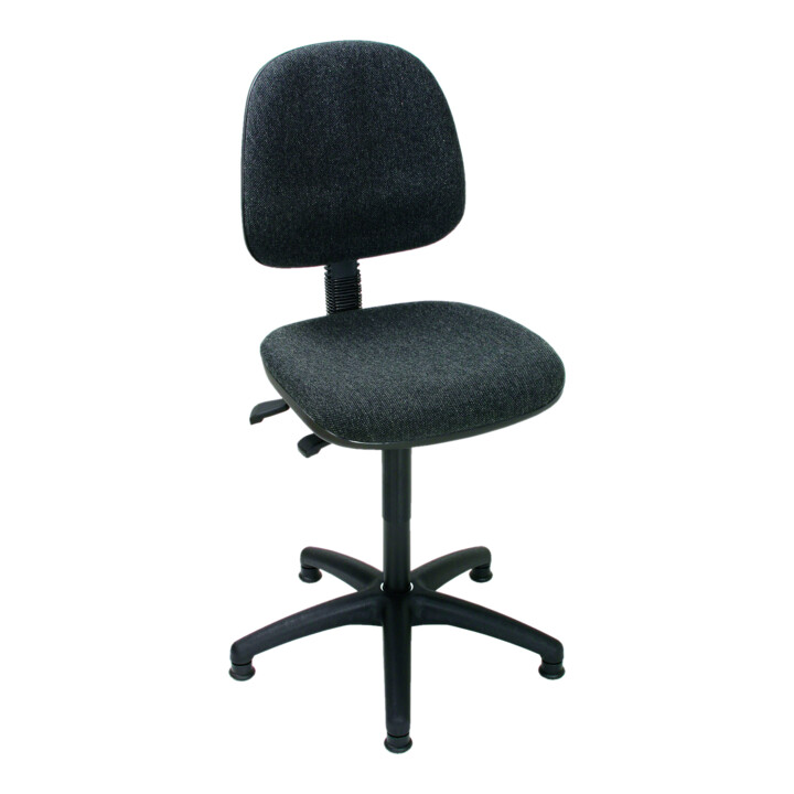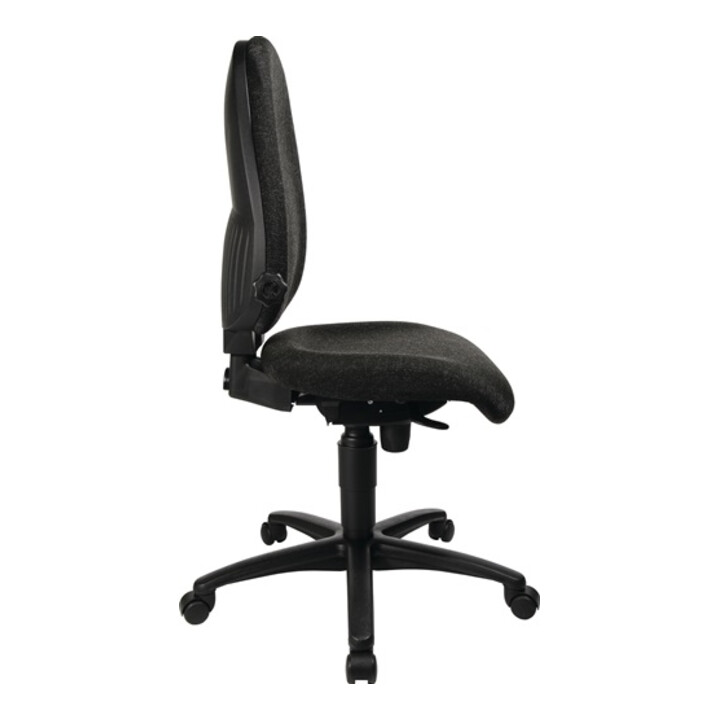Sitz und Rückenlehne aus strapazierfähigem Kunstleder · Rückenlehne höhen- und neigungsverstellbar · Rückenlehne mit Permanentkontakttechnik und Lendenwirbelunterstützung · Spezial-Bandscheibensitz zur optimalen Abstützung im Beckenbereich · stabiles, kippsicheres Fünffuß-Kunststoff-Fußkreuz, schwarz mit lastabhängig gebremsten Sicherheits-Doppelrollen für harte Böden Weitere technische Eigenschaften: · Typ: Point 70