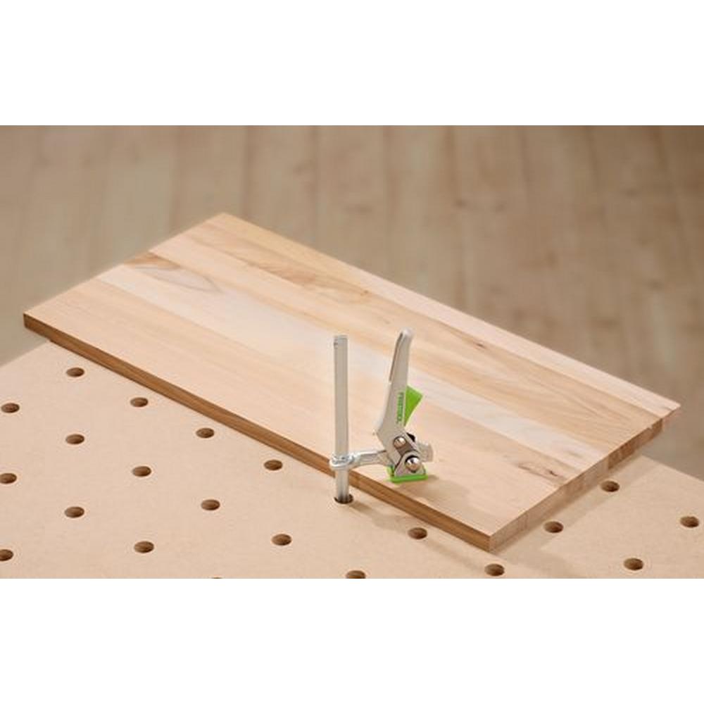 Tisch mit Lochplatte und Klappbeinen, Schwenkeinheit, Auflageeinheit, Winkelanschlag, Anschlagreiter, Führungsschiene FS 1080/2, Abweiser FS-AW, Zusatzklemmung, im Karton