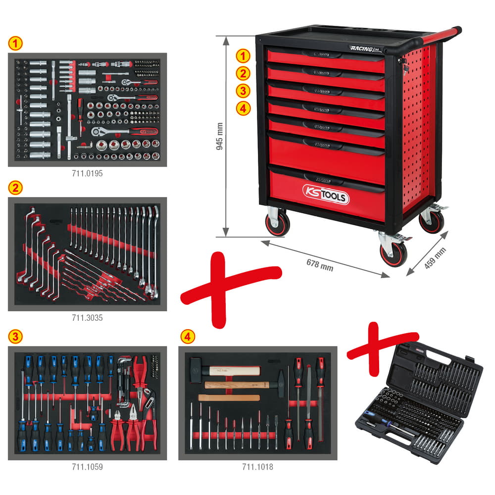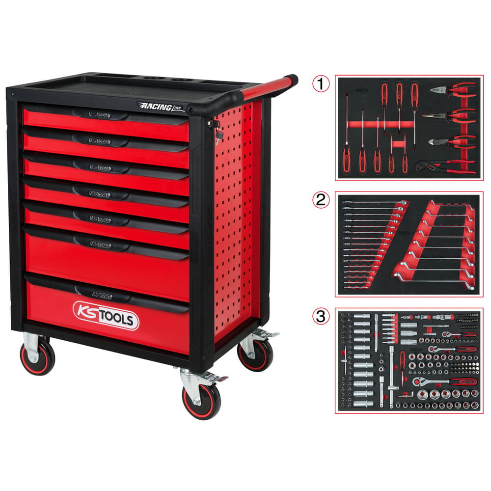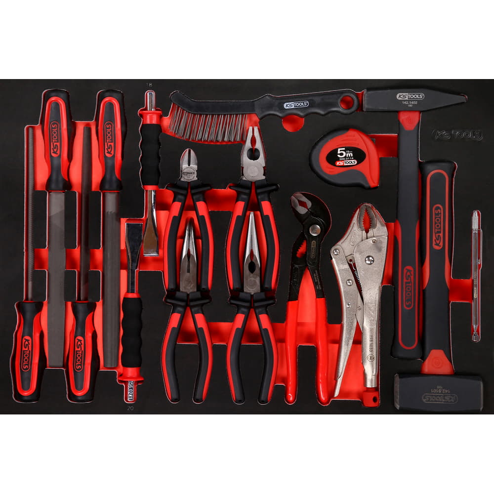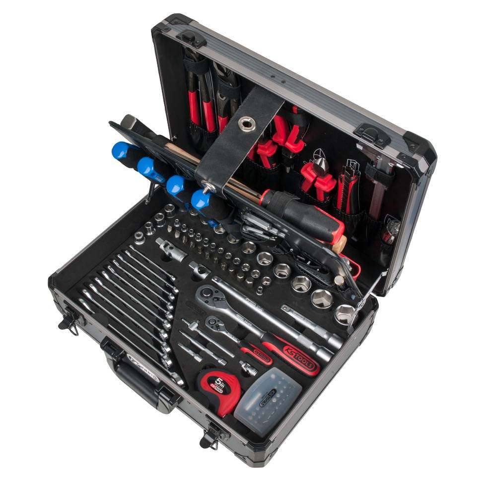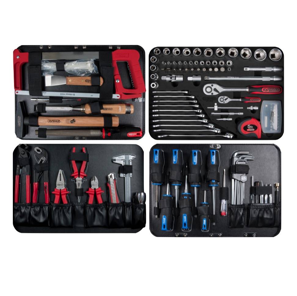 Die Firma KS Tools bietet hier mit diesem 149 teiliges Werkzeugset eine breite Auswahl an verschiedenen Bits, Ratschen, Schlüsseln und anderen Werkzeugen um alle anfallenden Alltagsaufgaben lösen zu können. Die Werkzeuge sind aus rostfreiem Chrom Vanadium Stahl gefertigt, was eine hohe Stabilität und Langlebigkeit bedeutet. Die Werkzeuge lagern in einem gut sortierten und robusten Koffer um einen einfach Transport und Lagerung zu ermöglichen. KS Tools ist ein führender Hersteller für Handwerkzeuge aller Art und zeichnet sich vor allem durch seine lange Tradition und hohe Verarbeitungsqualität auszeichnet.