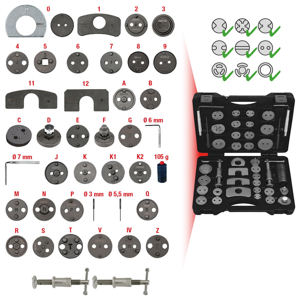 - Adapterplatten mit Mitnehmern für Bohrungen im Bremskolben