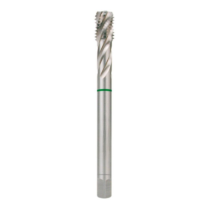 Maschinengewindebohrer aus kobaltlegiertem Hochleistungs-Schnellarbeitsstahl. Durch die höhere Warmhärtebeständigkeit wird eine höhere Standzeit erreicht. Für Durchgangsgewinde und Sacklochgewinde, in unlegierte und legierte Stähle bis 1000 N/mm² Festigkeit und NE-Metalle. Das Gewinde wird in einem Arbeitsgang geschnitten. Wie HSS-Schnellarbeitsstahl, mit Kobaltlegierung 5%. Dieser warmfeste Werkstoff wird für die Bearbeitung von Materialien mit höherer Festigkeit und bei langen Schnittkanälen mit entsprechend starker Erwärmung eingesetzt. Der Kobaltanteil von 5% sorgt für eine höhere Warmfestigkeit, sowie für höhere Belastbarkeit.