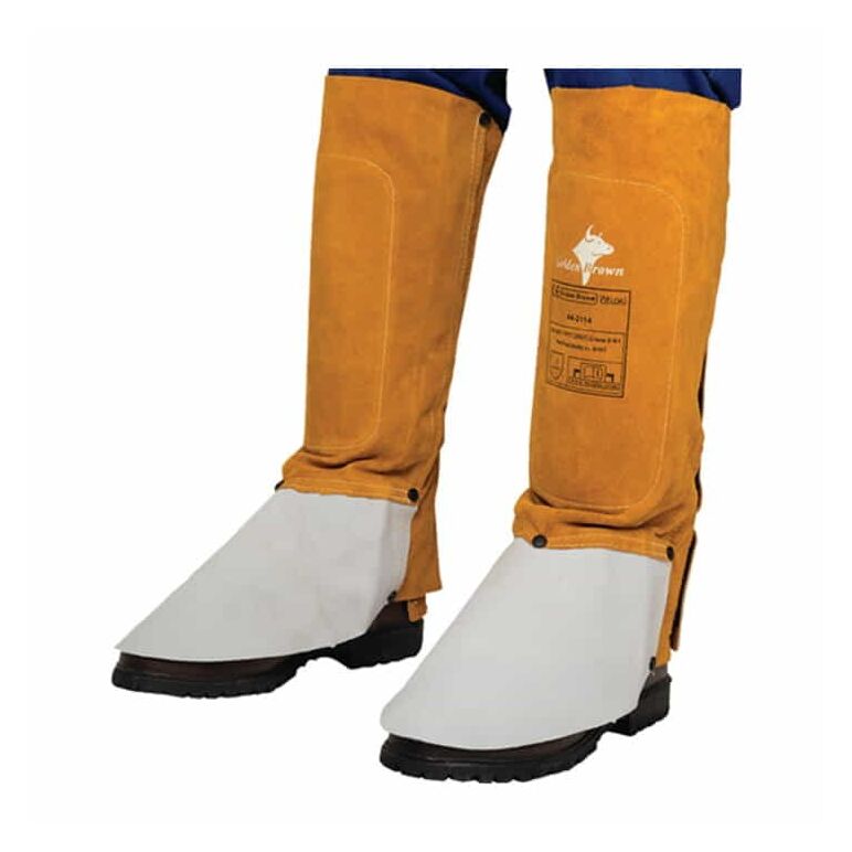 EN ISO 11611:2015 Kl. 2/A1, TÜV BP 60041277 0001, TÜV 21173205 001 aus Rindspaltleder · Länge 36 cm · Lederstärke 1 mm · mit beugsamem Einsatz am Schuh und Schienbein für bessere Passform · Umfang 37-47 cm Weitere technische Eigenschaften: · Norm: EN ISO 11611:2015 Kl. 2/A1