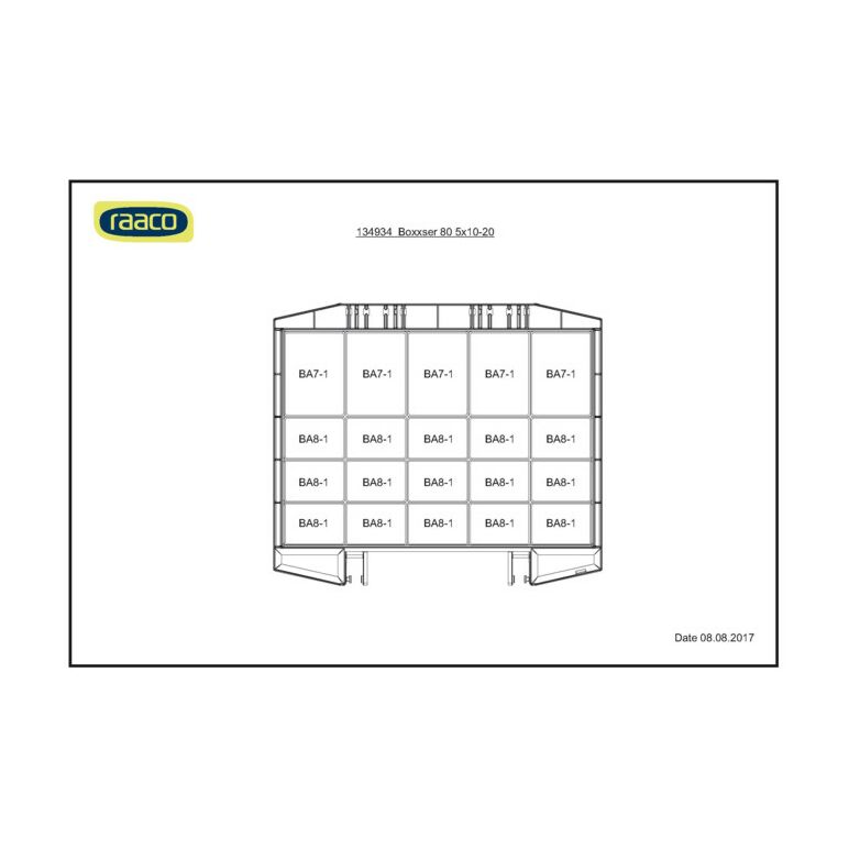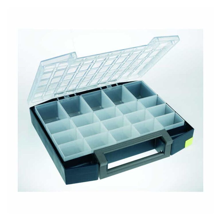 - Boxxser 80 5x10-20 ist ein Sortimentskoffer mit 20 herausnehmbaren Einsätzen und Tragegriff mit Sicherheitsverriegelung