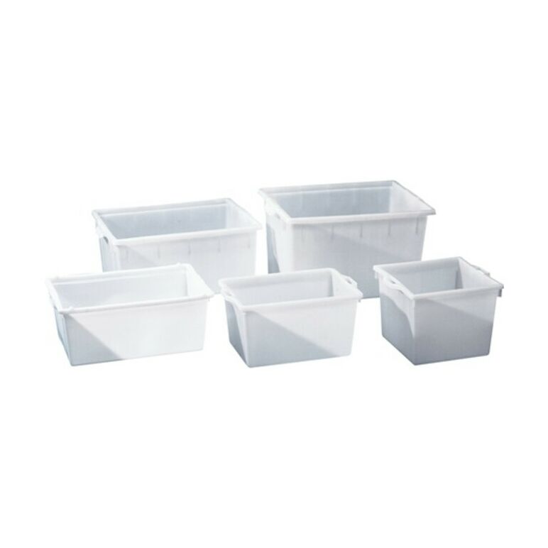 Polyethylen · konische Ausführung · platzsparend ineinander stapelbar · innen und außen glatt · lebensmittelecht · weitgehend säure- und laugenbeständig · temperaturbeständig -20 °C bis +40 °C · Farbe natur Weitere technische Eigenschaften: · Ausstattung: konische Form · Innenlänge: 490mm · Innenbreite: 310mm