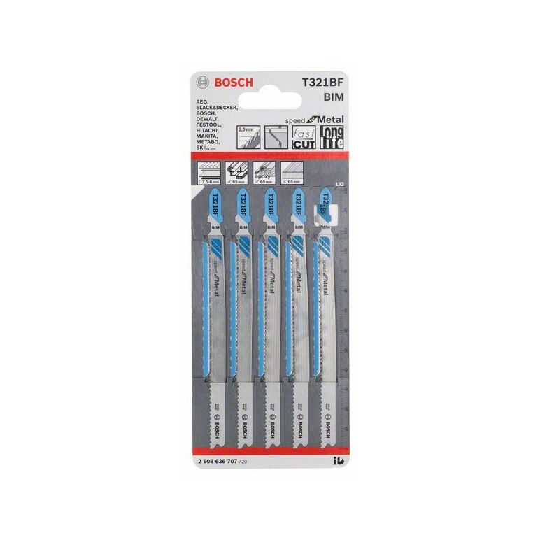 Bosch Stichsägeblatt T 321 BF Speed for Metal, 5er-Pack (2 608 636 707)