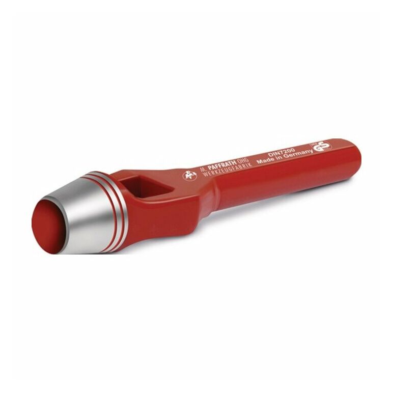 DIN 7200 A · zum Ausstanzen von Pappe, Leder, Gummi und anderen weichen Werkstoffen · kräftige gesenkgeschmiedete Form · Schneide gehärtet und angelassen auf 48 - 56 HRC · Pfeife innen konisch hinterdreht und blank geschliffen · Schaft bearbeitet und widerstandsfähig pulverbeschichtet Weitere technische Eigenschaften: · Gewicht: 420g · Schaft: rot · Norm: DIN 7200 Form A