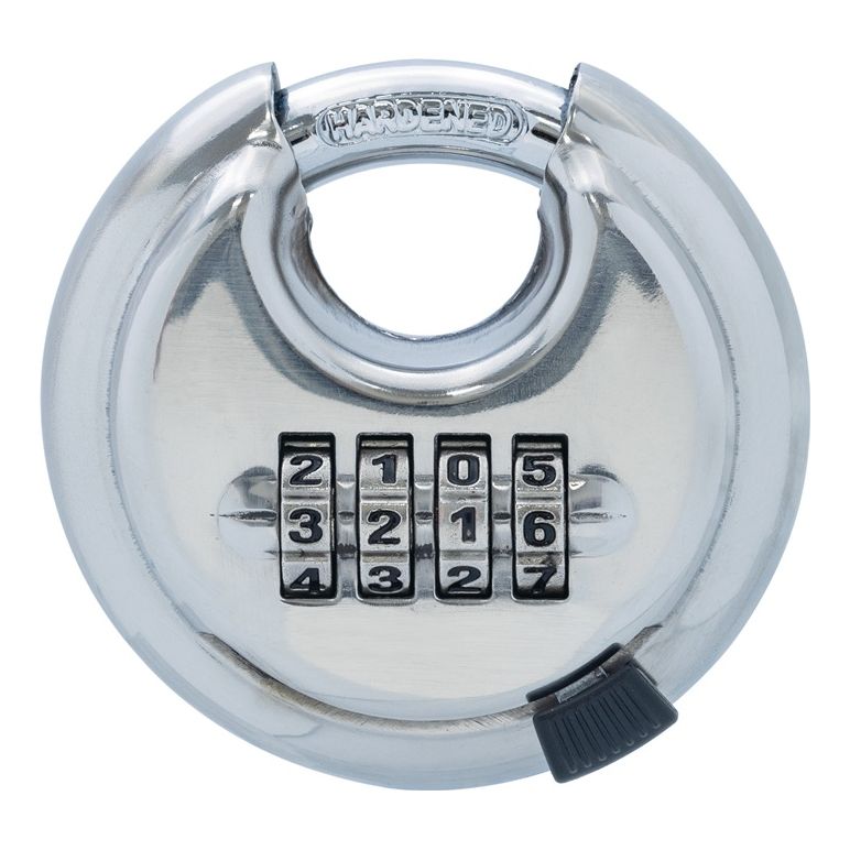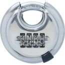 Citadel-Vorhängeschloss im Diskus-Design mit einer einstellbaren vierstelligen ZahlenkombinationWeitere technische Eigenschaften:· Farbe Schloss: verchromt· Farbe Bügel: verchromt