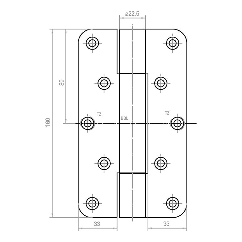 für ungefälzte Türen an Blockzargen · Belastungswert 160 kg · innenliegender, verdrehsicherer Schraubstift · verdeckt liegende, wartungsfreie Axial-Radial-Gleitlager · Rollenlänge 160 mm · Rollen-Ø 22,5 mm · DIN links / rechts verwendbarWeitere technische Eigenschaften:· Materialstärke: 3,5mm