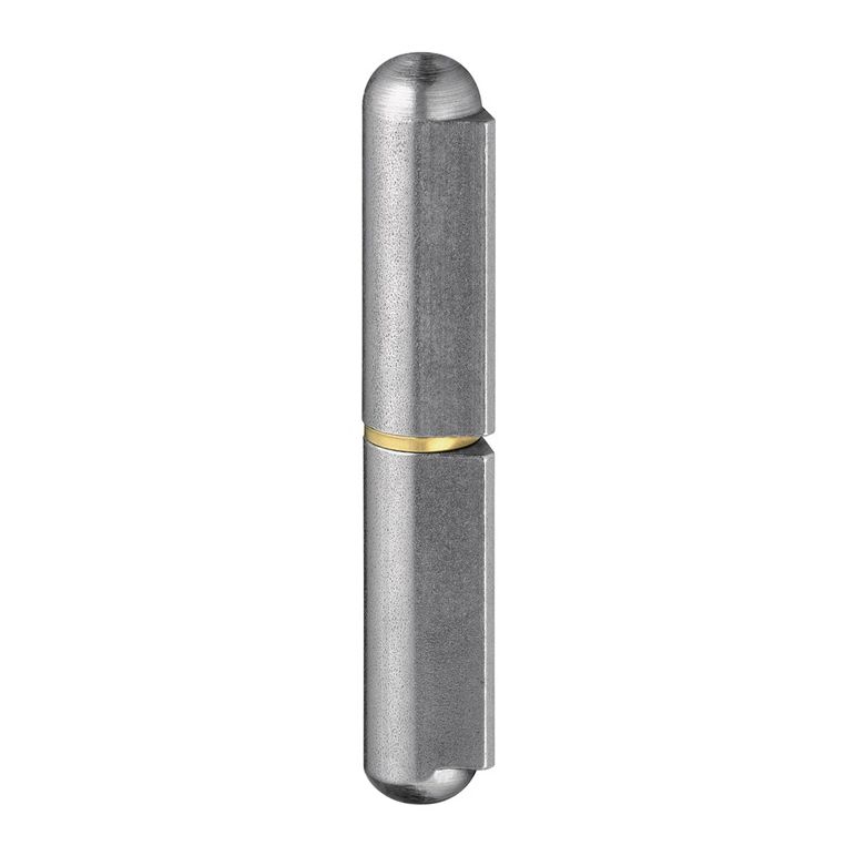 mit Rundkopf · 2-teilig · aus gezogenem Profilstahl · mit Nase zum Anschweißen und Messing-Laufring · DIN links / rechts verwendbar · mit festem StahlstiftWeitere technische Eigenschaften:· Ausführung: zum Anschweißen