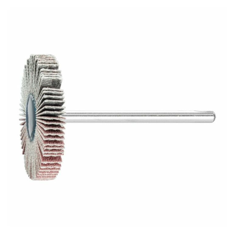 Korund A · mit Lamellen aus Schleifmittel auf Unterlage · für Feinschleifarbeiten an größeren Radien im Werkzeug- und Formenbau · Bearbeitung kleinerer und schwer zugänglicher Flächen im Behälter- und Apparatebau · Bearbeitung von Armaturen aus Bunt- und Leichtmetallen · für den universellen Einsatz von Grob- bis Feinschliff · Schaft-Ø 6 mm · Auch geeignet zur Bearbeitung von Messing, Kupfer und Zink Weitere technische Eigenschaften: · Material: Korund · Schaft-Ø: 6mm · max. Drehzahl: 25400min-¹