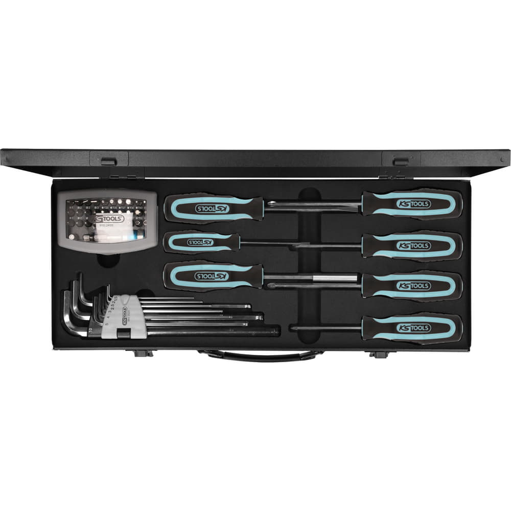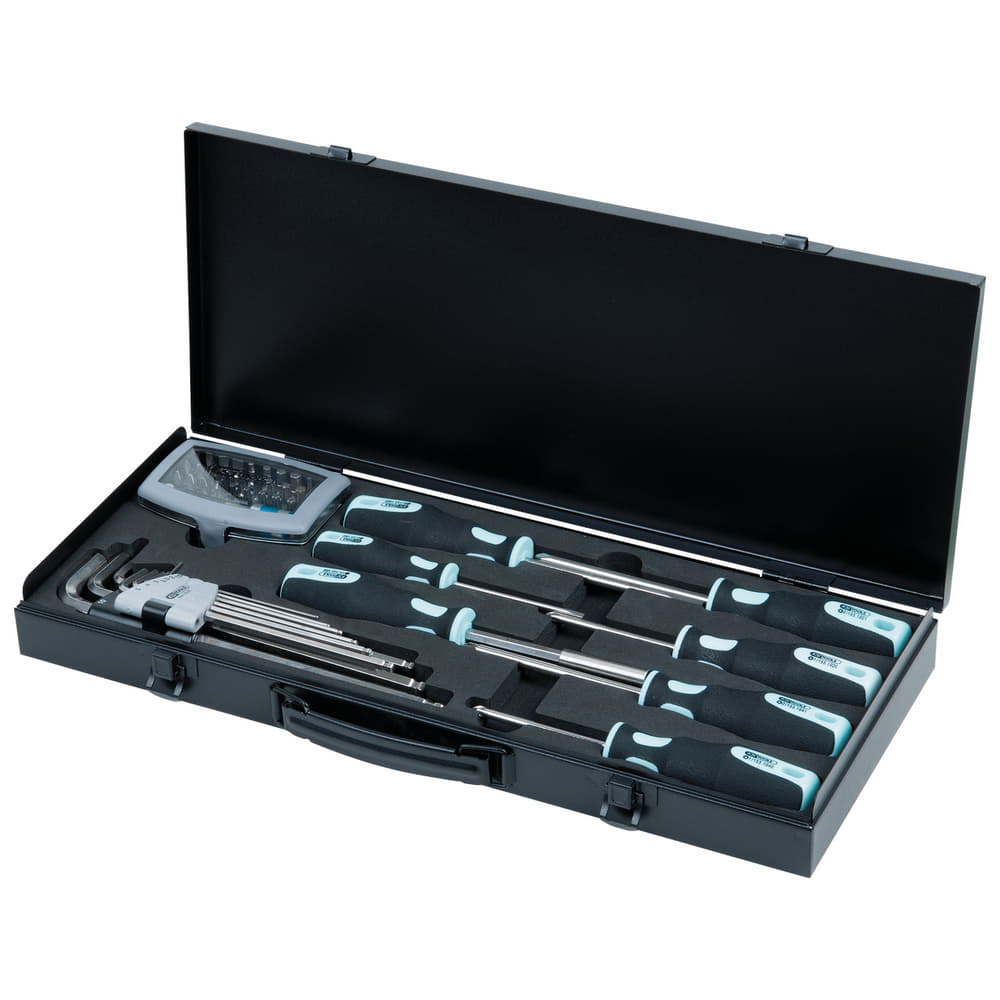 ÜBERSICHTLICHE AUFBEWAHRUNG: Der Werkzeug-Satz wird in einem handlichen Koffer aus Aluminium geliefert, in dem die Werkzeuge übersichtlich aufbewahrt werden können.