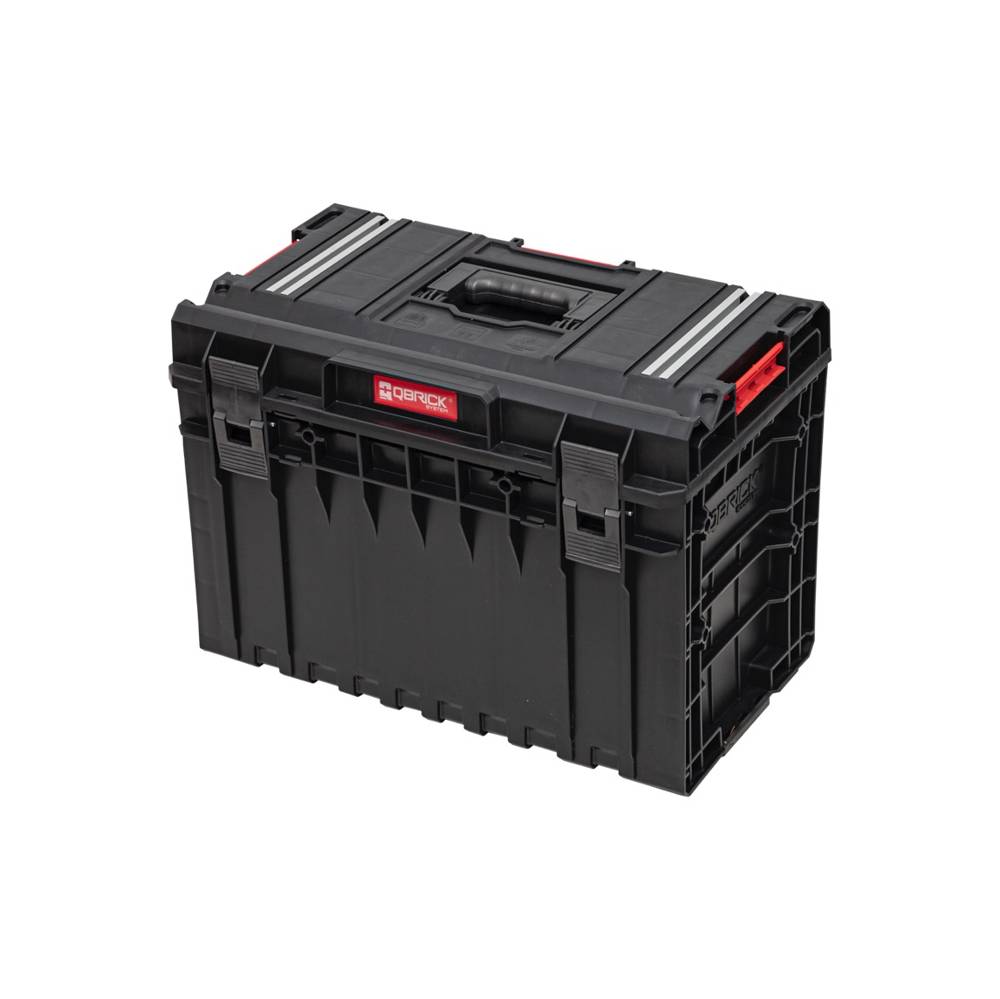 Der ONE 450 ist ein Werkzeugkoffer mit einem sehr großen Fassungsvermögen von 52 Litern. Dadurch ist es in der Lage, große Elektrowerkzeuge und Handwerkzeuge aufzunehmen. Zwei verstellbare Fächer sorgen für Ordnung im Inneren der Box. Jede Box ist mit einer flexiblen Dichtung ausgestattet, die vollen Schutz gegen das Eindringen von Staub und Wasser bietet (IP66). Er ist serienmäßig mit zwei verstellbaren Trennwänden ausgestattet, die eine perfekte Organisation des Raums im Inneren des Kastens ermöglichen. Technik ist die professionellste Version von Qbrick, ausgestattet mit innovativen Aluminium-Montageschienen, die den Einsatz klassischer Zimmermannszwinge ermöglichen. Dank ihnen können die Boxen von Qbrick System Technik als Arbeitstische verwendet werden, die zum präzisen Schneiden, Kleben oder Halten erforderlich sind. Die verstärkte Struktur der Abdeckung und des Körpers garantiert eine hohe Tragfähigkeit (50 kg) und hält einem Druck von bis zu 120 kg stand, wodurch komfortable Arbeitsplattformen geschaffen werden können. Die Version 2.0 der ONE-Produktlinie ist eine neue Generation von Werkzeugkästen und Organizern mit einem verstärkten Design. Durch die zusätzliche Anpassung der Gehäuse an M8-Gewindeeinsätze kann das System an die Bedürfnisse des Anwenders angepasst werden.