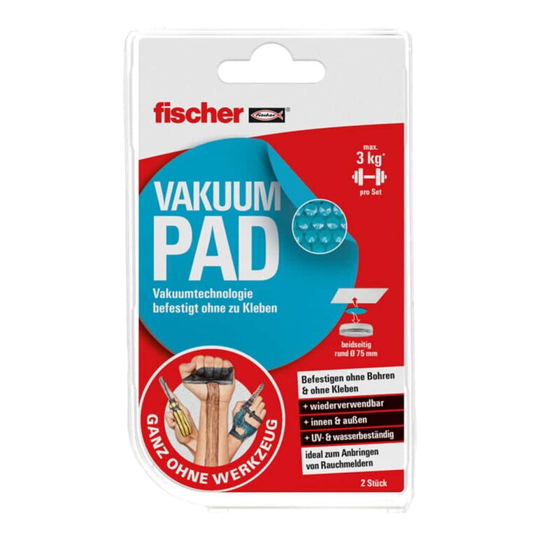 Fischer Vakuum-Pads rund 2 Stück, befestigt, ohne zu kleben