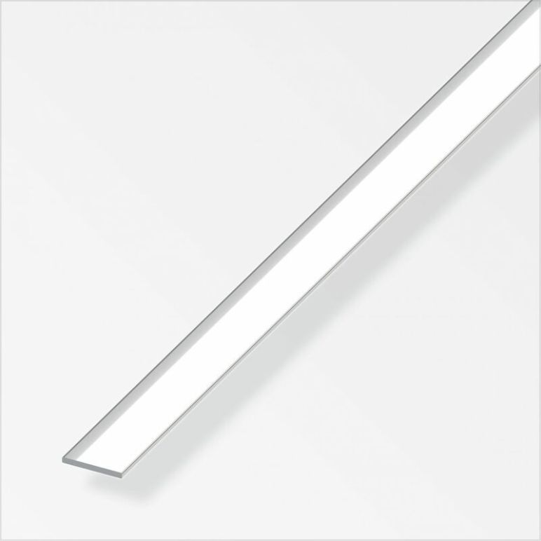 Heim- und Handwerker-Profile für einen universellen EinsatzLänge: 2.5 MeterMaß A: 30 mm Maß B: 2 mm Material: AluminiumOberfläche: eloxiert poliertFarbe: chrom optikArtikelart: FlachstangeGewicht: 0.405 kgLieferumfang: 1 x Flachstange