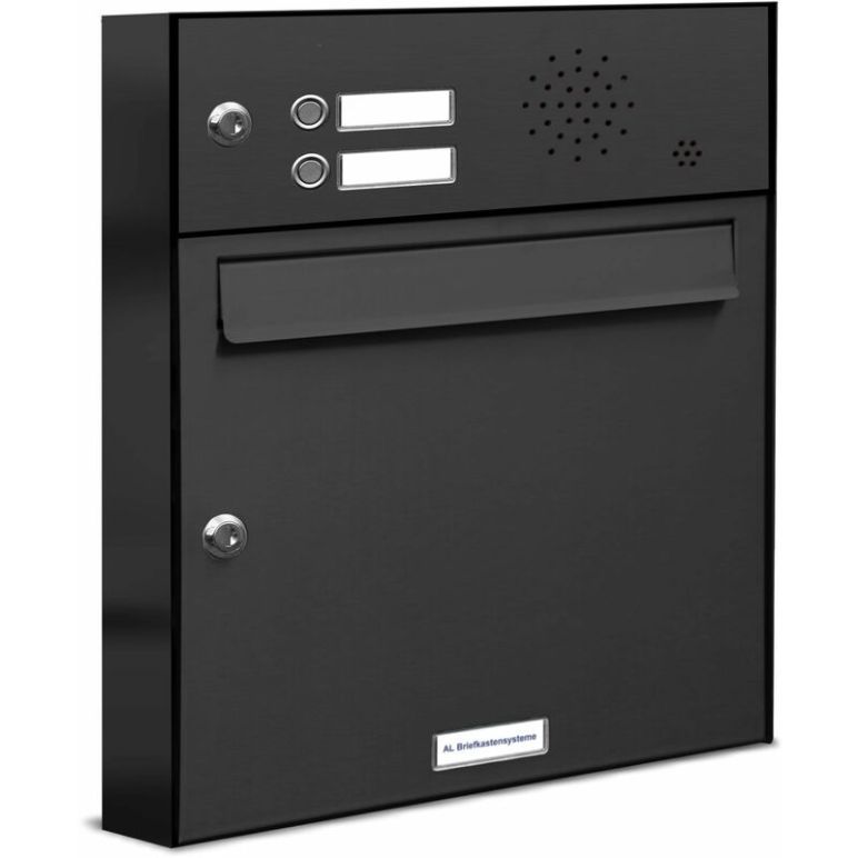 1er Briefkasten Anlage Aufputz - Wandmontage ral 7016 Anthrazit 2 Klingel - Anthrazit Grau ral 7016