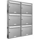 Al Briefkastensysteme - 6er V2A Edelstahl Wandbriefkasten Anlage 6 Fach Briefkasten Postkasten - Edelstahl