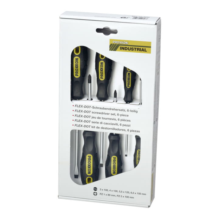 Beim händischen Verschrauben werden auf Dauer die Handgelenke und Muskeln stark belastet. Abhilfe verschafft der besonders ergonomisch geformte SoftFinish® Schraubendreher, der für eine optimale Übertragung der Handkraft sorgt. Mit den langen, schlanken Griffgrößen können kleine Schrauben sicher und schnell eingedreht werden. Für das Eindrehen großer Schrauben gibt es großvolumige Griffgrößen, mit denen höhere Drehmomente aufgebracht werden können. Außerdem sind die verschiedenen Griffgrößen an die stets gleich große Hand von schraubenden Profis angepasst. Der Abrollschutz und das am Griffende aufgedruckte Schraubensymbol sorgen für effizientes Arbeiten. Dank seiner optimalen Griffigkeit ist der SoftFinish®-Schraubendreher besonders für Anwendungen in trockenem Umfeld geeignet. Die Position der Hart- und Weichzonen am Griff unterstützt den perfekten Zugriff beim schnellen und kraftvollen Drehen.