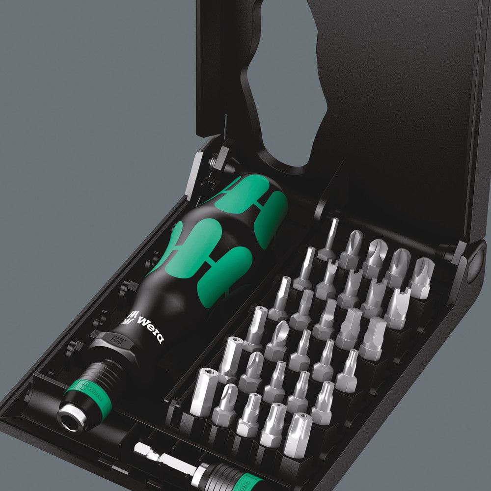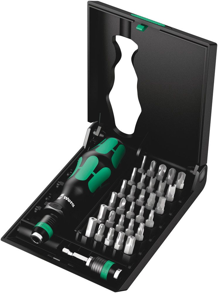 Schluss mit eingequetschten Fingern. Das Stiftschlüsselset PocketStar® überzeugt durch optimale Handhabung und einen großen Gebrauchsnutzen, der sich in einer Vielzahl praktischer Details ausdrückt. Die sieben Stiftschlüssel werden platzsparend in einem handlichen Klapphalter aufbewahrt. Die clevere Aushebetaste ermöglicht eine einfache und leichte Auswahl der gewünschten Schlüsselgröße. Zwischen der 90°- und der 270° Stellung sind beliebig viele Arbeitsstellungen je nach Schraubaufgabe wählbar. In der 180°-Stellung wird das Werkzeug beispielsweise zum Schraubendreher umfunktioniert. Bei einer Positionierung des Schlüssels am 270°-Anschlag wird aus dem Klapphalter ein Werkzeug mit praktischem Hebelarm für hohe Drehmomente. Pfiffig gelöst ist auch die Forderung von Anwendern, dass immer nur ein einziger Schlüssel in die Arbeitsstellung bewegt werden kann. Das lästige Zurückschwenken nicht benötigter Stiftschlüssel entfällt somit beim PocketStar®.
