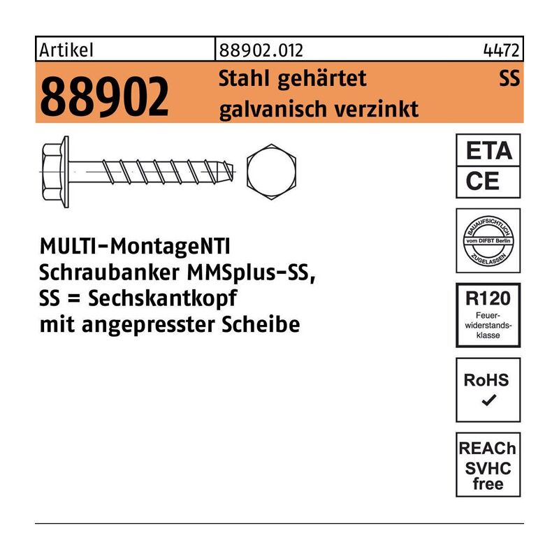 - 25x HECO MULTI-MONTI-plus SS Betonschraube 12 x 90 mm SW 15 Sechskantkopf verzinkt A2K ( 48409 )