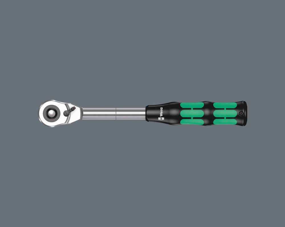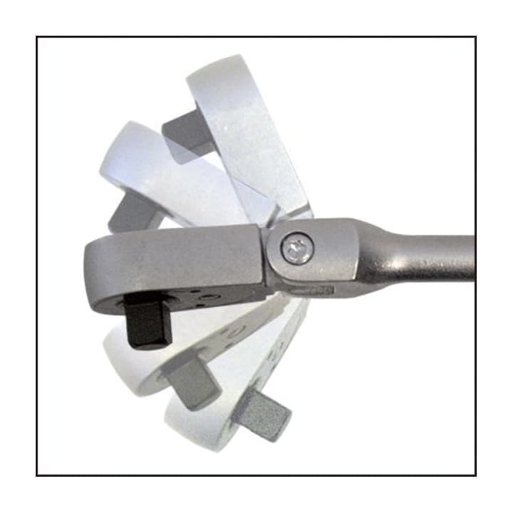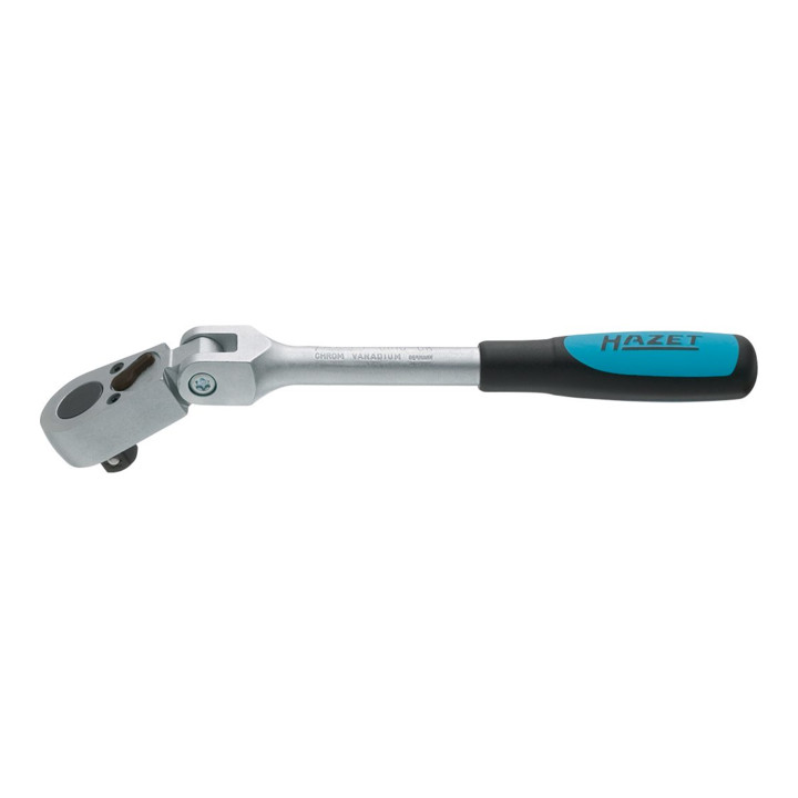 KOMFORTABLE HANDHABUNG: Die Umschaltknarre mit extra langem Stiel und 2-Komponenten-Griff besitzt einen um 180° schwenkbaren Kopf. Die Kugelarretierung und Druckknopfauslösung erleichtern die Arbeit.