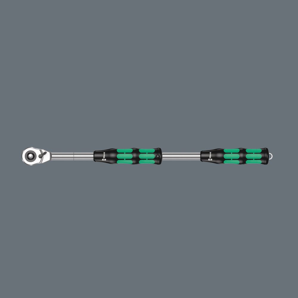 KOMFORTABLE HANDHABUNG: Die Umschaltknarre mit 2-Komponenten-Griff hat einen variablen Teleskopstiel für eine optimale Kraftübertragung. Die Kugelarretierung und Druckknopfauslösung erleichtern die Arbeit.