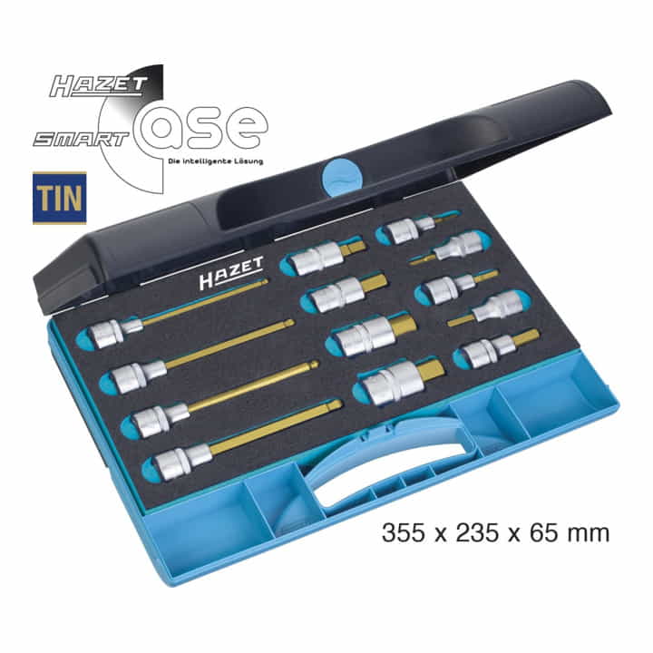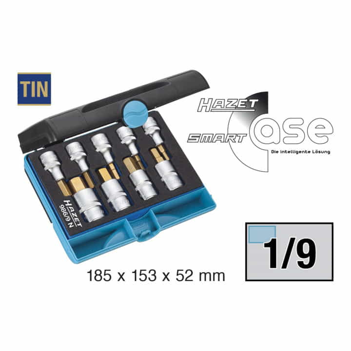 VARIABLE GRUNDAUSSTATTUNG: Der Koffer enthält eine Umschaltknarre 1/2inches inkl. Verlängerung, Adapter, Kardangelenk, Bits und sechskant oder zwölfkant Steckschlüssel mit UD-Profil von 10 - 30 mm.