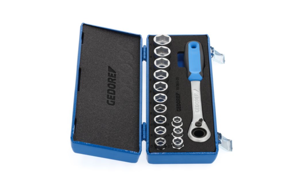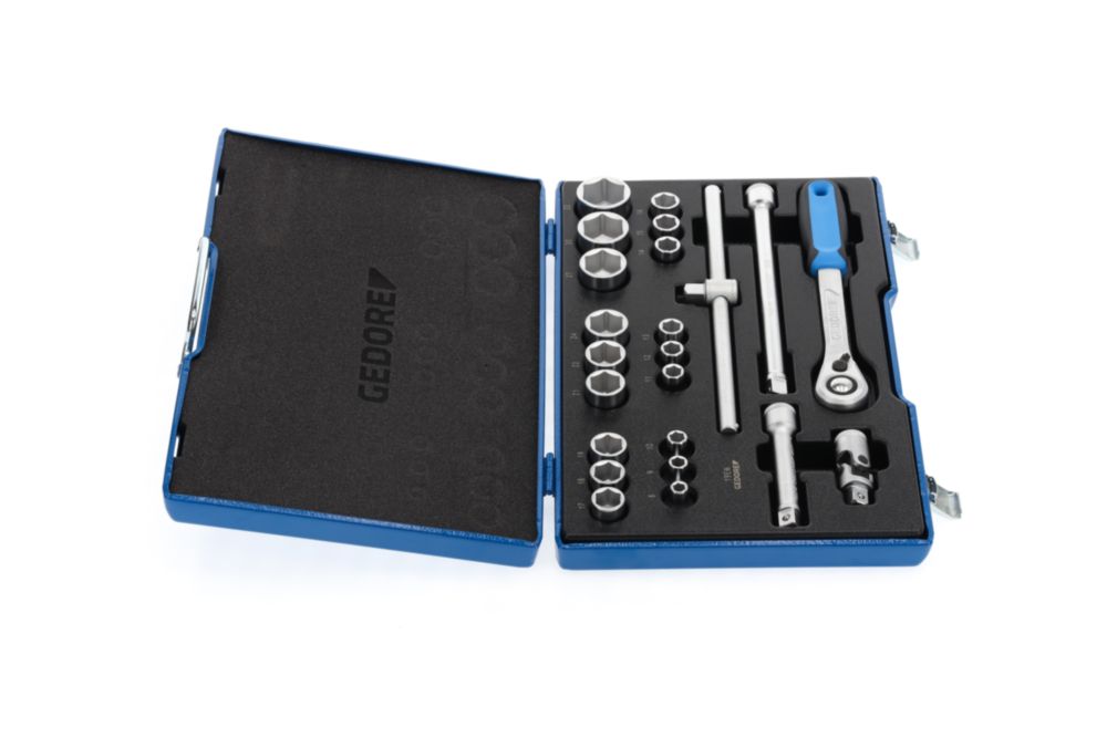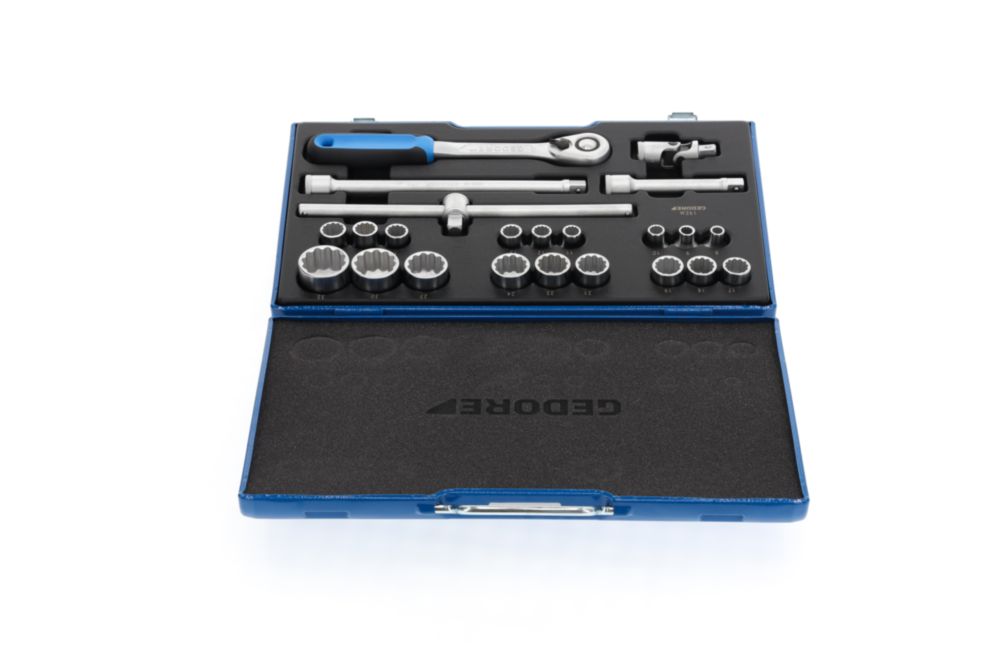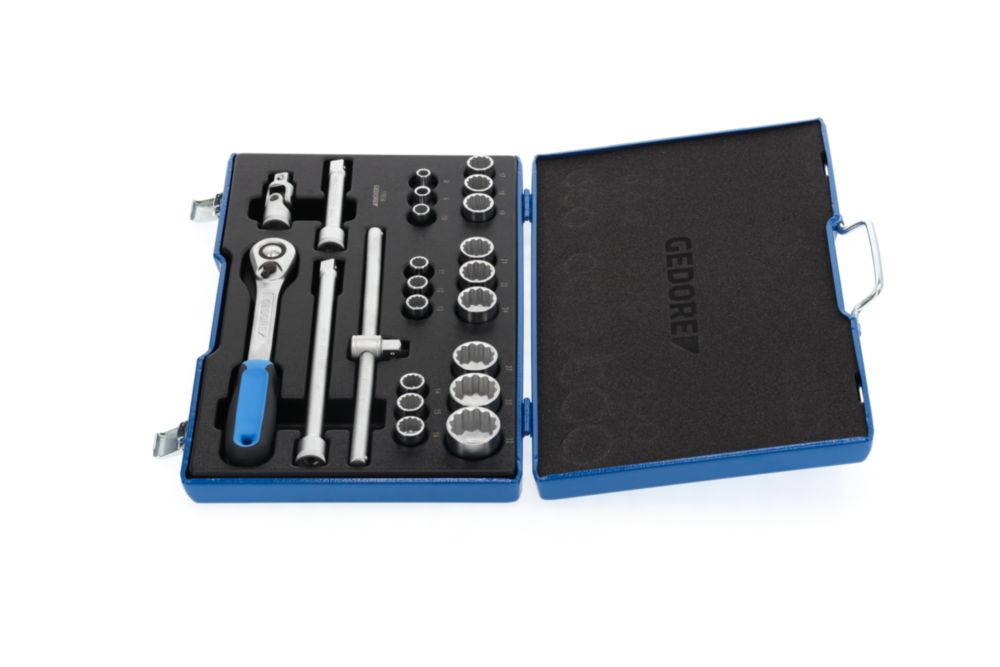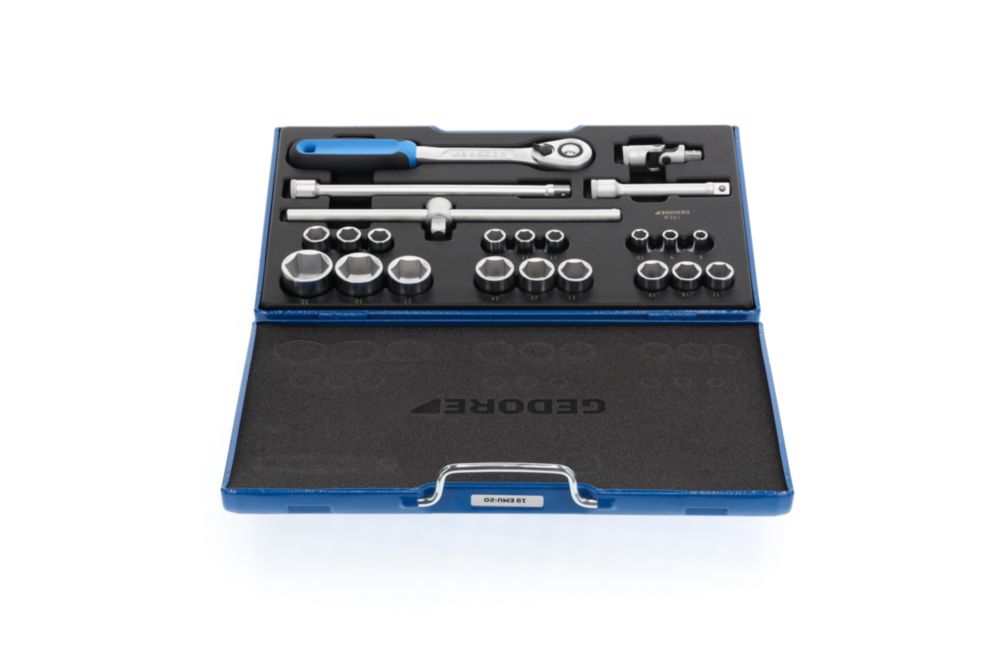 LIEFERUMFANG: 1 x GEDORE Steckschlüssel-Satz 1/2inches, 23 teilig, 6-kant, 8-32 mm, Länge: 277 mm, Gewicht: 5700 g, Artikelnummer: 19 EMU-20