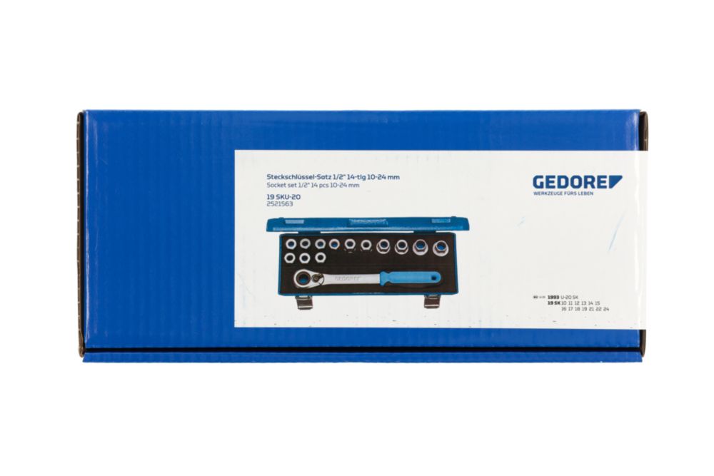 LIEFERUMFANG: 1 x GEDORE Steckschlüssel-Satz 1/2inches, 14 teilig 10-24 mm, Länge: 330 mm, Gewicht: 1700 g, Artikelnummer: 19 SKU-20