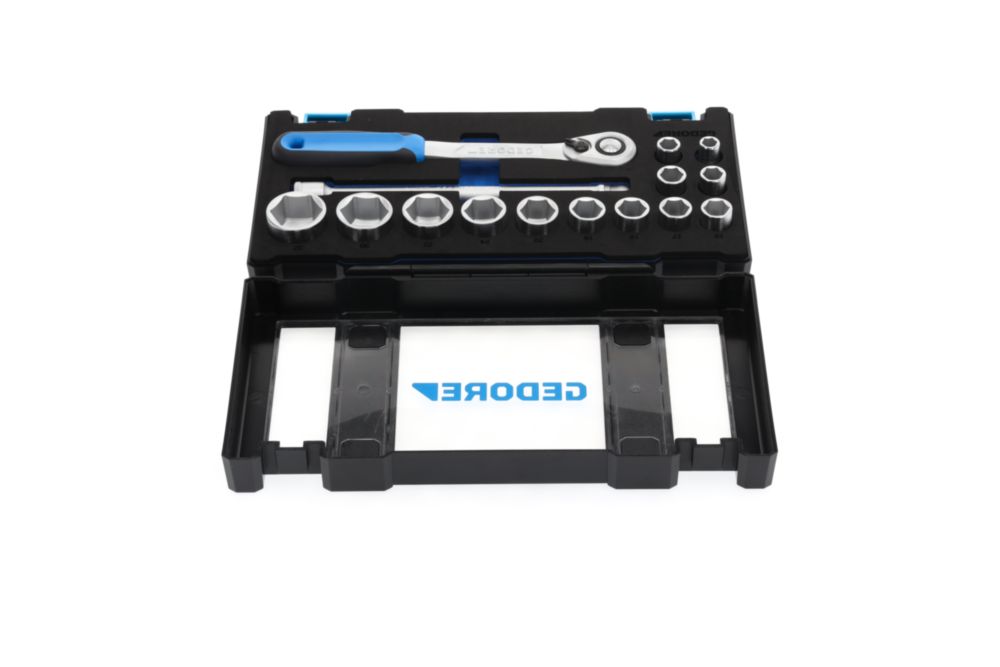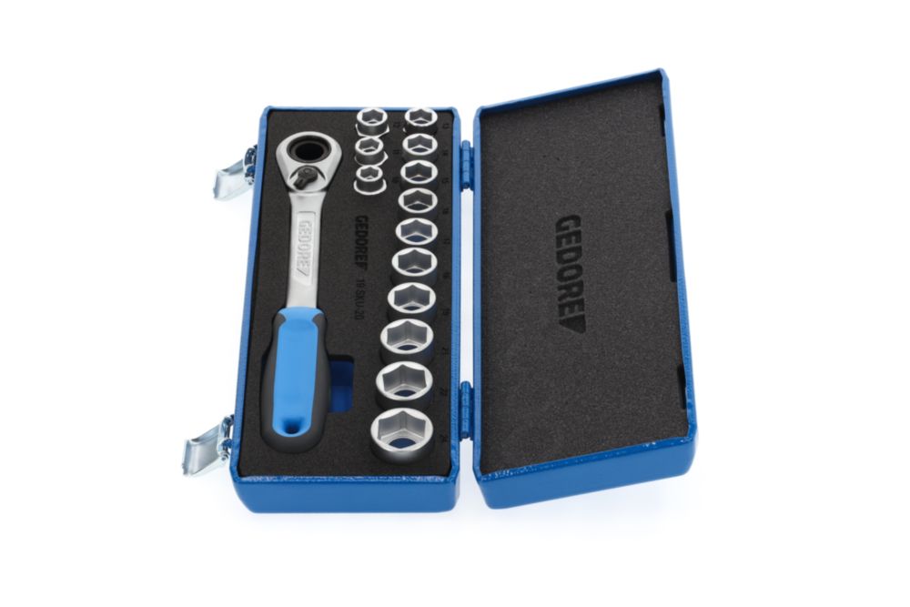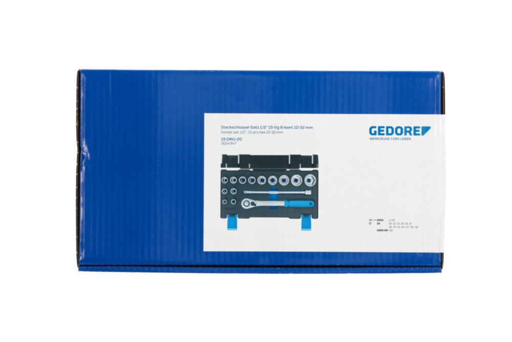 LIEFERUMFANG: 1 x GEDORE 19 DMU-20 Steckschlüssel-Satz 1/2inches, 15 teilig, Länge: 380 mm, Gewicht: 5142 g, Artikelnummer: 19 DMU-20