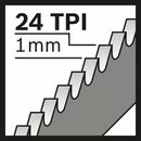 Das S 922 AF Flexible for Metal Säbelsägeblatt eignet sich für mühelose Schnitte in Metall. Seine sehr feine Zahnteilung und gewellte Zähne ermöglichen glattes Schneiden in dünnes Material. Zudem bietet das Blatt aus Bimetall beim Schneiden von Stahl mit normaler Stärke eine lange Lebensdauer. Es ist mit einer sehr feinen Zahnteilung (1 mm) für das Schneiden von Stahlrohren und -profilen mit einer Wanddicke von 0,73 mm ausgestattet. Zudem ermöglicht die Standardlänge des Säbelsägeblatts von 150 mm eine Schnittleistung von bis zu 100 mm. Geeignet für Säbelsägen mit 0,5-Zoll-Universalschaftsystemen. Werkstoff: BIM, Zahnausführung: gewellt, gefräst, Zahnteilung [mm] / TPI: 1 / 24, Abmessungen LxBxD [mm]: 150 x 19 x 0,9, Einsatzbereiche: dünne Bleche (0,7-3 mm), feine Rohre/Profile (ø <100 mm), müheloser, feiner Schnitt, Typ: S 922 AF.
