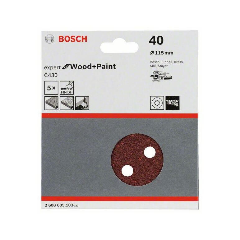 Bosch - 5x Schleifblatt C430 Expert for Wood 8 Löcher Klett 115 mm K40 - 2608605103