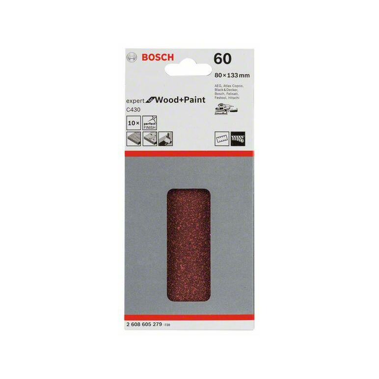Bosch Schleifblatt C430, 80 x 133 mm, 60, 8 Löcher, Klett, 10er-Pack (2 608 605 279)