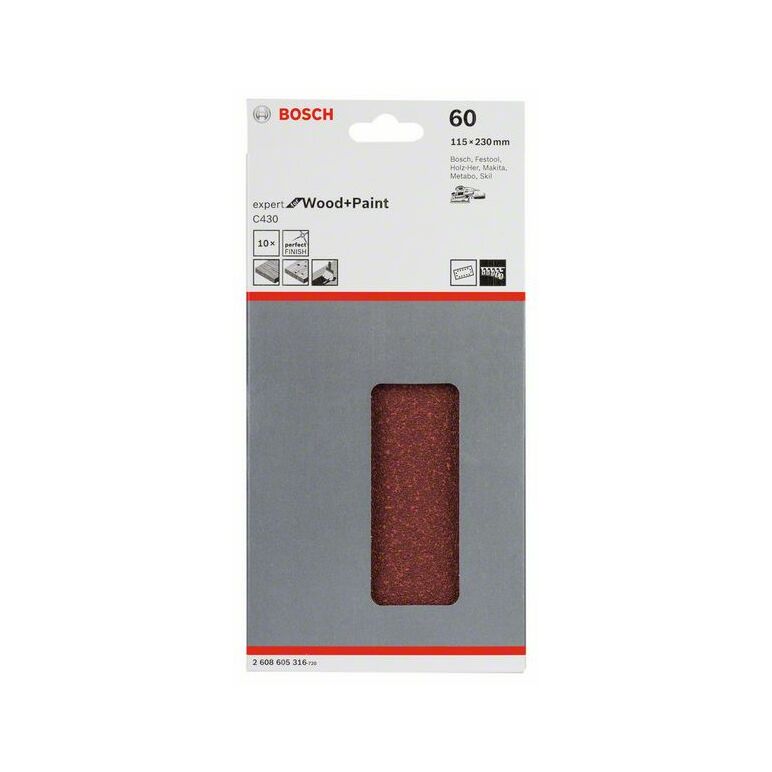 Bosch Schleifblatt C430, 115 x 230 mm, 60, 14 Löcher, 10er-Pack (2 608 605 316)